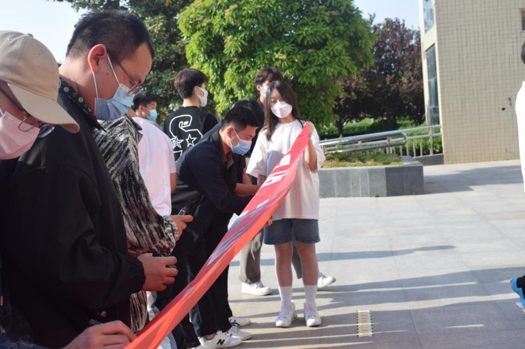 在活动启动式上,检察系副主任郭荣军致辞,提出四点要求,鼓励我系广大师生在疫情封校期间积极参与系部和学院相关部门组织的各项体育活动,一要树立“健康第一”观念,注重增强体质;二要“走下网络”,让生活更加多彩;三要“走出宿舍”,让青春更为张扬;四要“走向操场”,让运动带来快乐。参加活动的各位老师和学生庄重地在条幅上签字,以表示对“三走”系列活动的积极响应。